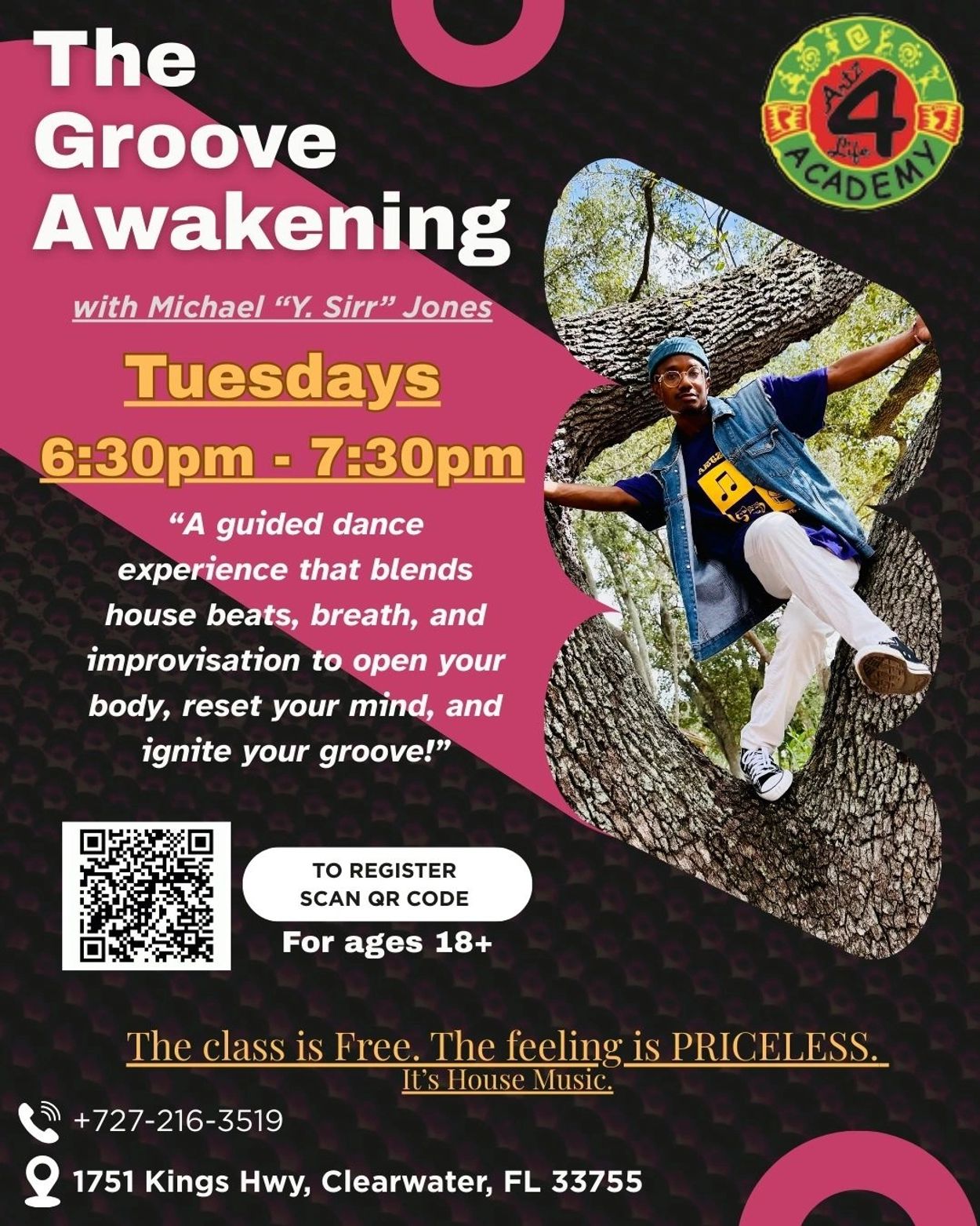 Come groove with us, Tuesdays 6:30pm-7:30pm. The Groove Awakening with Michael "Y. Sirr" Jones hosted at Artz 4 Life Academy.